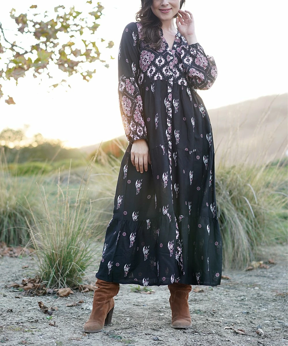 Encompass your free-spirited flow in the breezy, lustrous fabric blend of this tunic, complete with laced and embroidered intricacies.
