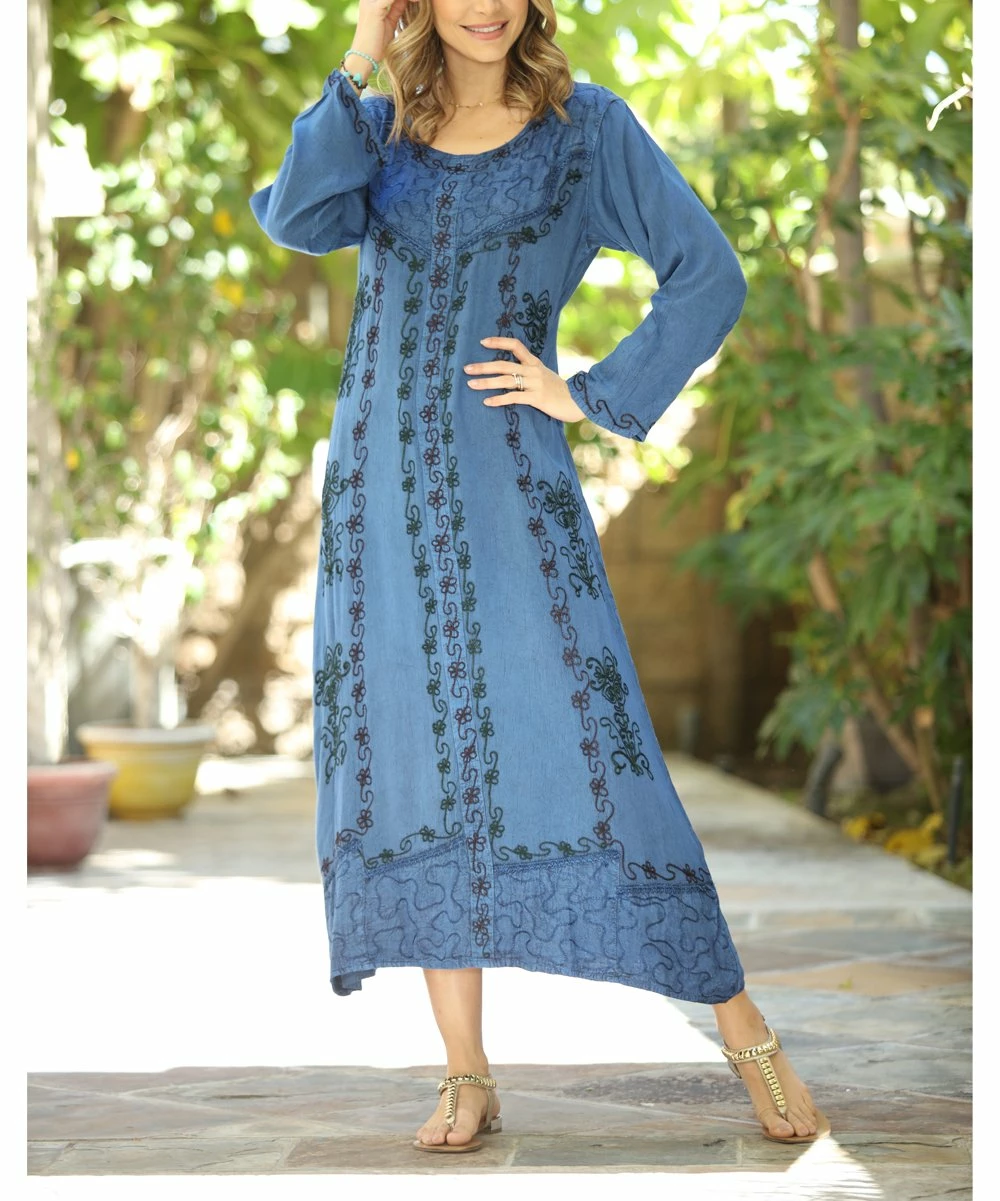Show off your effortlessly chic style when you don this breezy maxi dress boasting a charming embroidered design and flowy bell sleeves.