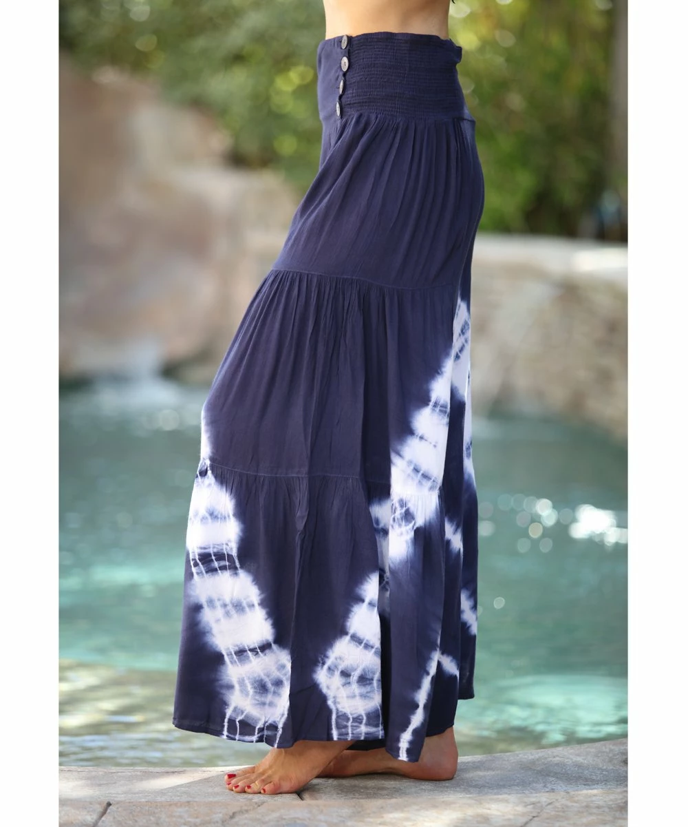 Add a flowy finish to your ensembles with these palazzo pants boasting button accents and a comfy elastic waist.
