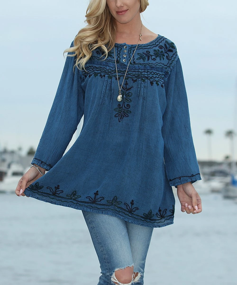 Flow with the salty sea air as you walk the coast in this embroidered tunic, boasting a boho-chic expression over a breezy fabric blend.