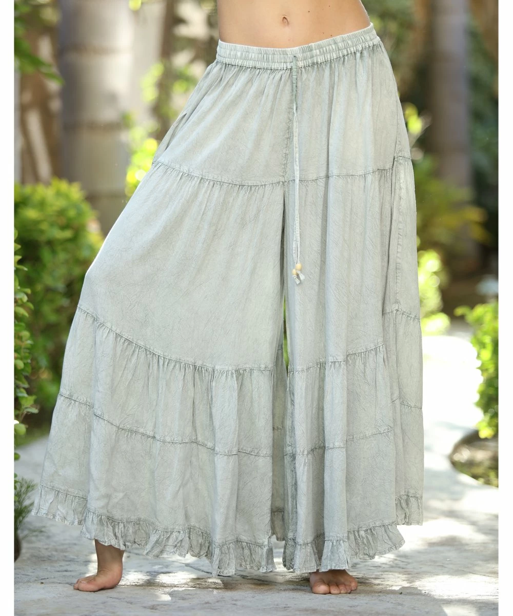 Ananda’s Collection | Light Sage Tiered Tie-Waist Palazzo Pants – Women