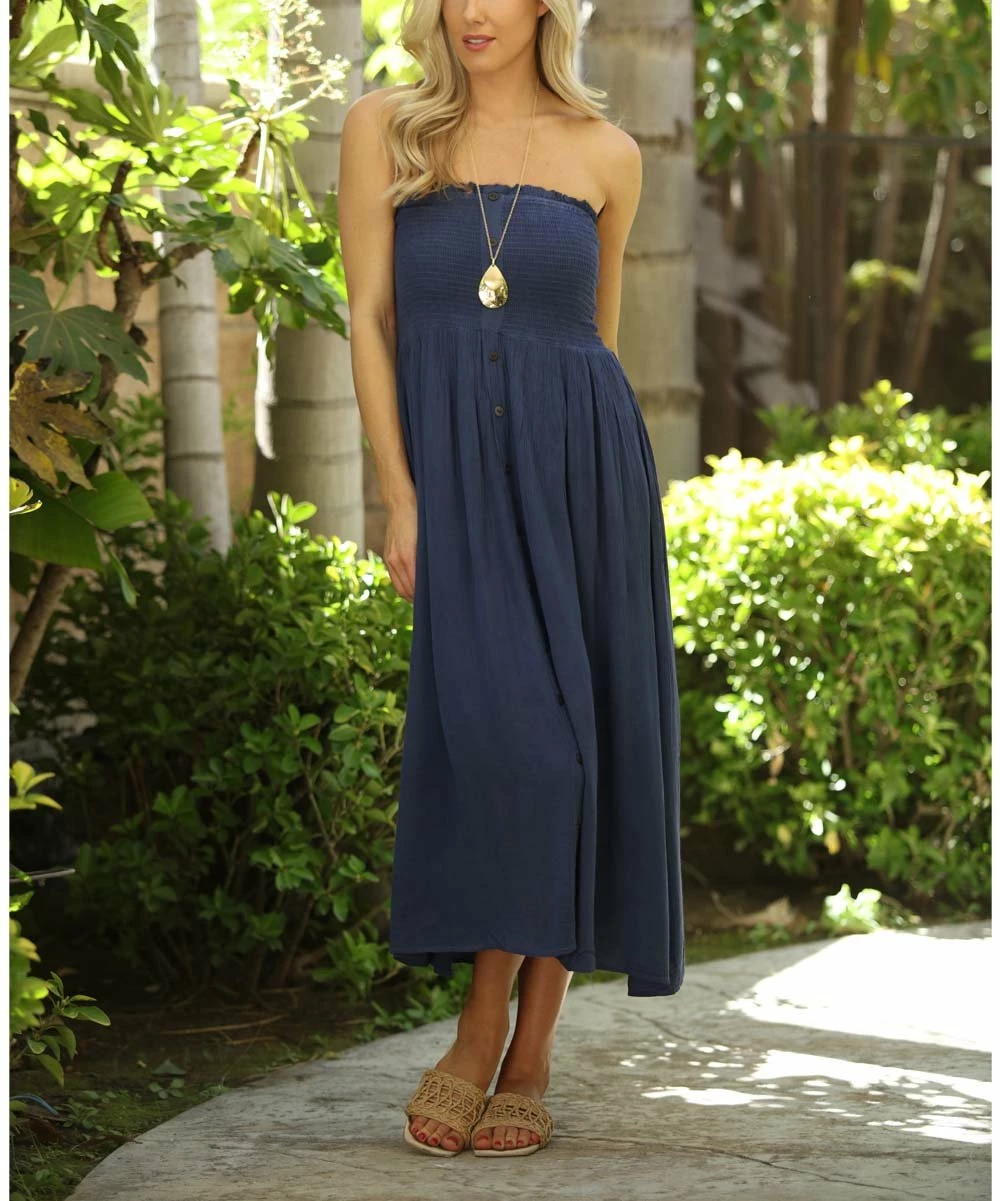 Slip into this sleeveless smocked midi dress for a casual, easy-to-wear warm weather option.