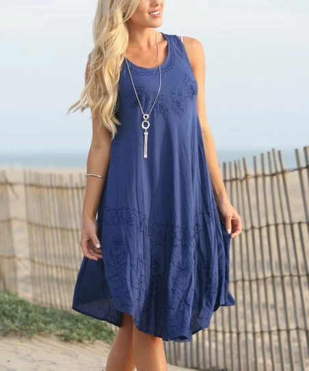 This sleeveless dress features a breezy-chic look for warm-weather days. Soft and loose-fitting fabric provides extra comfort.