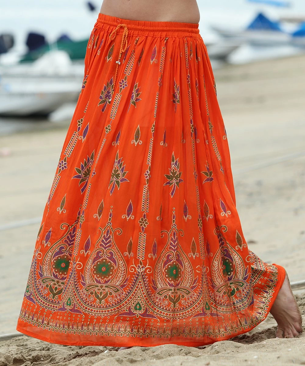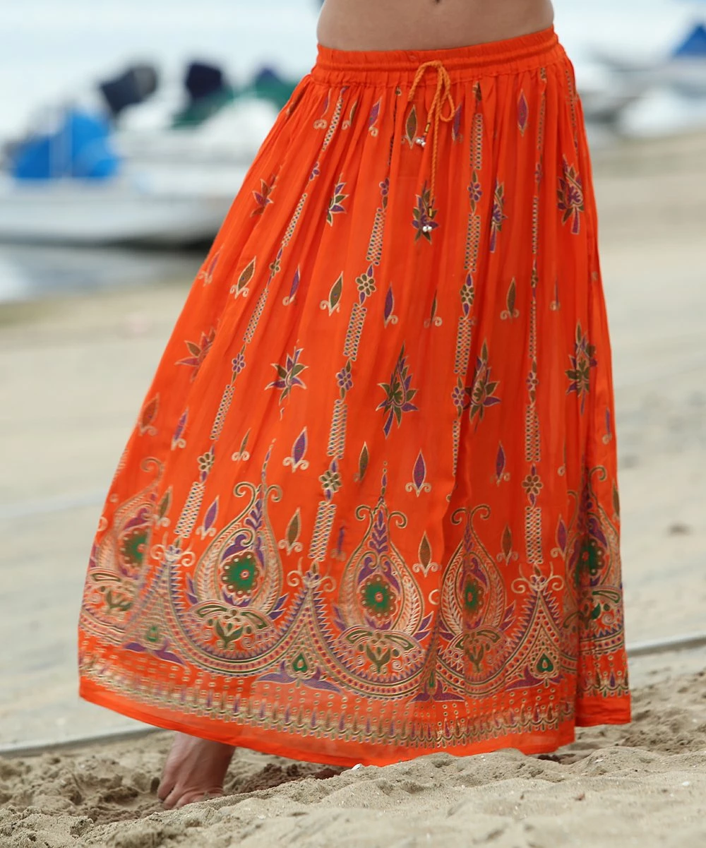 Take a leisure stroll in sweeping, boho style when wearing this intricately-detailed maxi skirt. An elastic waistband provides a stretchy and comfortable fit.
