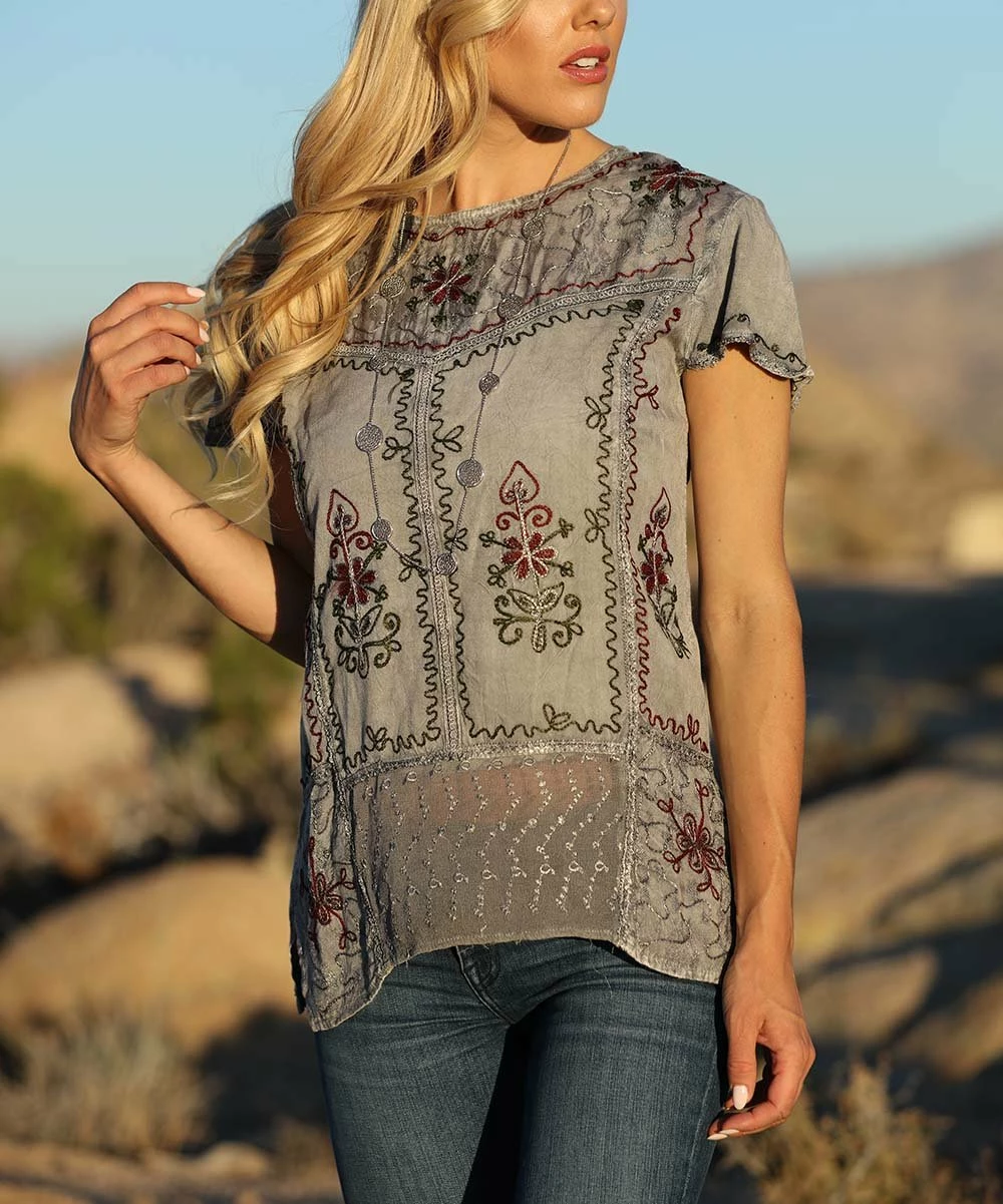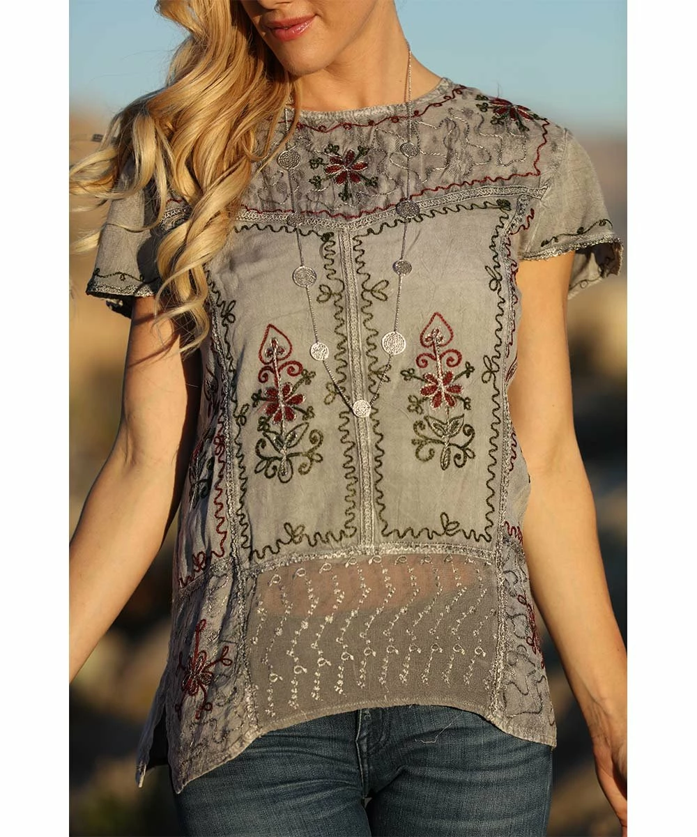 Emanate carefree energy by slipping into this tunic boasting a breezy, loose-fitting design and embroidered detailing.