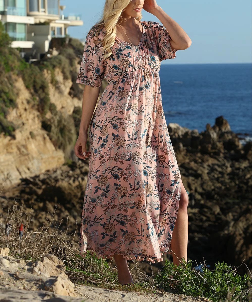 Spend your days in breezy comfort with this soft maxi dress that features a blooming floral pattern and side slits for ease of movement.