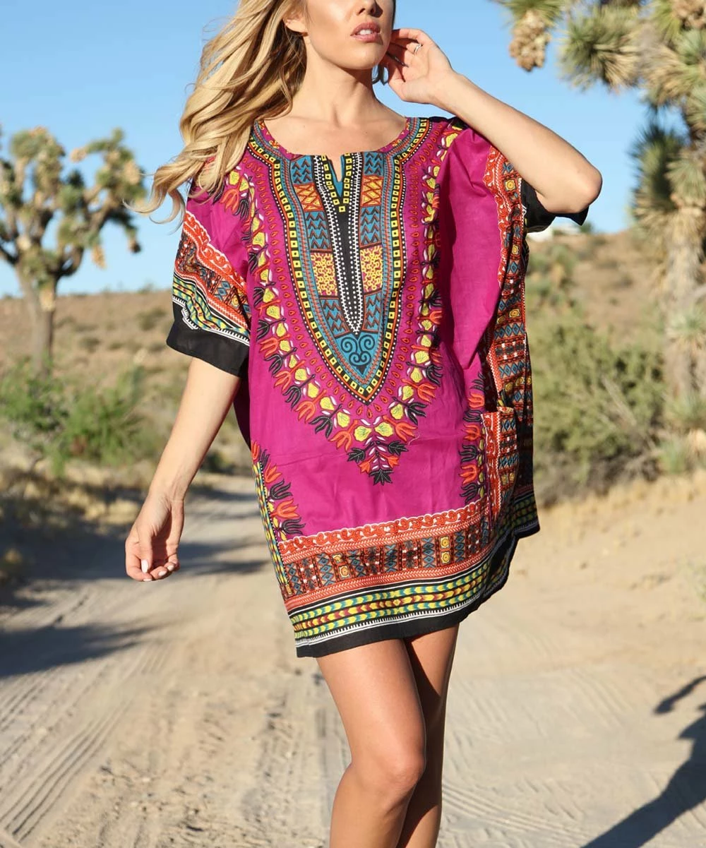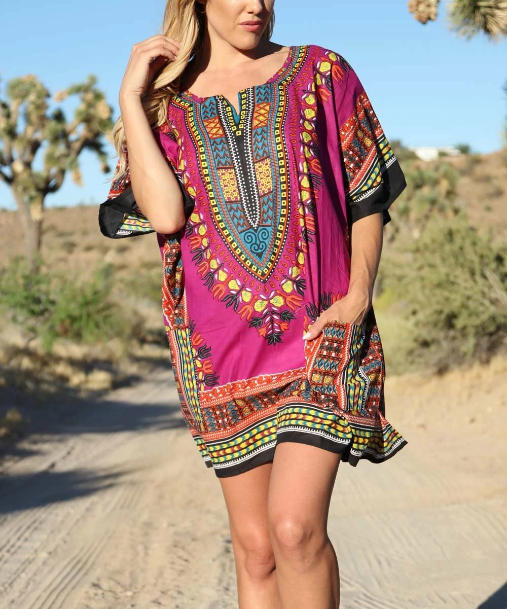 Ananda’s Collection | Purple & Yellow Abstract Pocket Notch Neck Tunic Dress – Plus