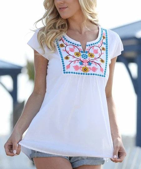 Whether paired with skinny jeans or leggings, this cotton tunic lends easygoing style to your look thanks to its embroidered yoke.