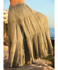 Ananda’s Collection | Olive Tiered Tie-Waist Palazzo Pants – Women